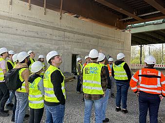 Die Ingenieurinnen und Ingenieure vor Ort erläuterten Bauphasen, konstruktive Lösungen und die Abläufe hinter den Kulissen. Für die Studierenden ergaben sich konkrete Anknüpfungspunkte zu ihrem Studium und ein Eindruck davon, wie Planung, Ausführung und Koordination im Alltag zusammenkommen.