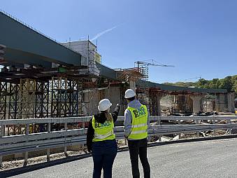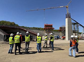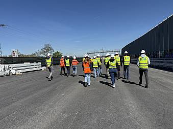 Im Rahmen einer Baustellenbesichtigung erhielten Studierende Einblicke in Planung, Bauabläufe und die besonderen Anforderungen eines Umbaus unter laufendem Verkehr. Was in der Theorie oft abstrakt bleibt, wurde hier konkret: Verkehrsführung im Provisorium, parallele Bauphasen, logistische Abstimmungen im engen Zeitfenster.
