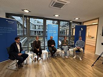 Passend dazu wurde über Hierarchien gesprochen. Semler schilderte sein Büro als eher flach organisiert, mit Verantwortung, die eingefordert und ermöglicht wird. Wachter bestätigte, dass in Gesprächen häufig bereits spürbar sei, ob ein Unternehmen auf Augenhöhe führen will und dass dies für viele Berufseinsteigerinnen und Berufseinsteiger ein entscheidendes Kriterium ist.