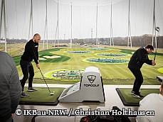 Nach einer kurzen Einführung durch einen Golf Coach standen den Teilnehmerinnen und Teilnehmern fünf Abschlagplätze zur freien Verfügung. Beim TopGolf entfällt das klassische „Wandern“ auf dem Golfplatz. Durch Chips in jedem Golfball wird die Flugbahn präzise gemessen und auf den Bildschirmen wiedergegeben. So kann ein ganzes Golfspiel simuliert werden, ohne, dass man den Rasen selbst betritt.
